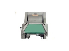 開繭機:構成包括機座、限位器、活動扣、脫繭板、脫繭片。機座為一體的框架及四腳,兩個后腳上端適當處開孔口;兩端開螺牙的線材連接件穿過兩個限位器孔口、兩個后腳孔口、一副活動扣孔口將脫繭板與機座相連在一起,連接件兩端用螺帽緊固;脫繭片為一條定長定寬的薄片,在薄片上設置若干個連體、等距、恰當高度、直徑小于薄片定寬的同向弧狀圓柱體的脫繭腿,脫繭腿下端設置定長定寬定厚、橫向為弧形狀、弧形兩端處為尖齒狀的脫繭腳;若干個脫繭片順序排列,固定在脫繭板上。使用本實用新型脫繭,操作簡單方便,脫繭省力快速,提高工作效率,脫繭質量好。