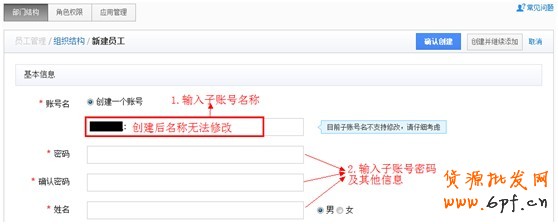 如圖8,在菜單員工管理>部門結構下點擊新建員工,按照圖8提示將員工和子賬號信息錄入即可。