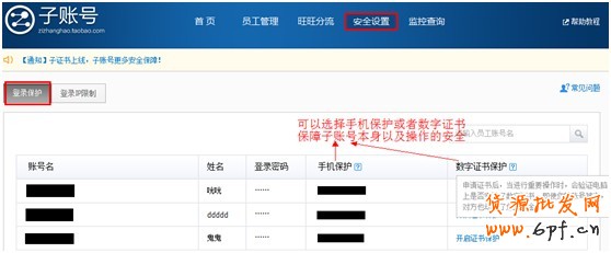 子賬號被盜了怎么辦?寶貝是否該員工本人操作刪除?設置子賬號安全保護,輕松解決以上問題。如圖11,子賬號為您提供了手機保護和數字證書等多種安全保護措施。