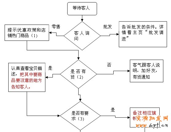 當前位置: 貨源批發網 » 網商學院 » 網店運營 » 客服工作 » 客服售前工作流程圖片解析