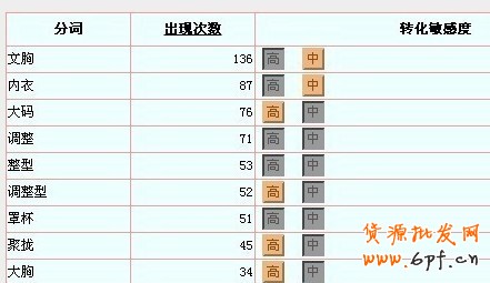 例如對于一款大碼文胸,大碼丶大胸是轉(zhuǎn)化敏感度高的,而文胸丶內(nèi)衣是轉(zhuǎn)化敏感度中的。