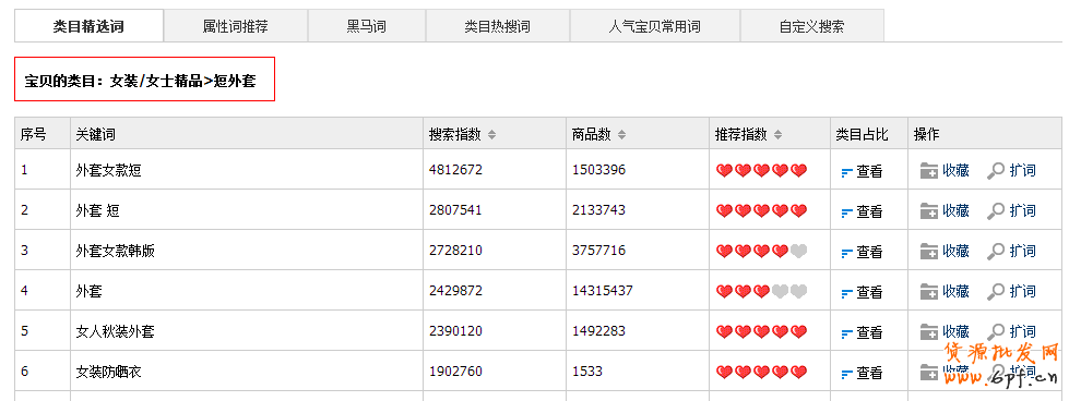 類目詞、屬性詞、黑馬詞、類目熱詞、人氣寶貝常用詞、海量詞庫搜索