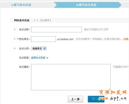 第三步,進入站點信息的填寫,可以編輯一個自己喜歡的個性簽名。PS:個性域名填寫一定要慎重,一旦填寫就不能修改了。