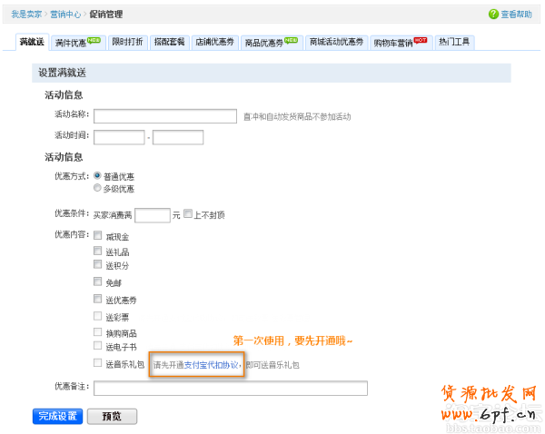 滿就送音樂禮包,快去開通設(shè)置吧!==>>“我的淘寶--我是賣家--營銷中心--促銷管理”!