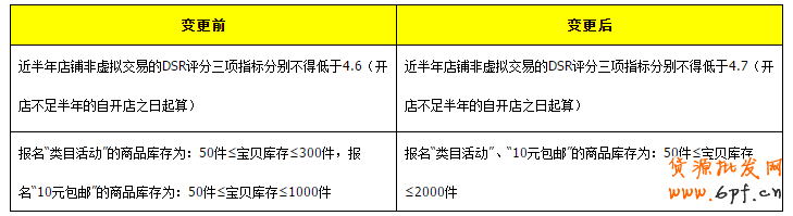 主要變更點:對報名要求中的店鋪DSR和商品庫存進行調整。
